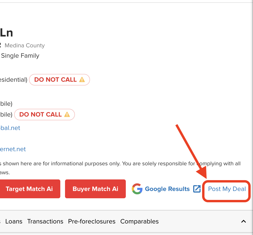 This will take you into the Property Details. Here you will see 'Post My Deal'